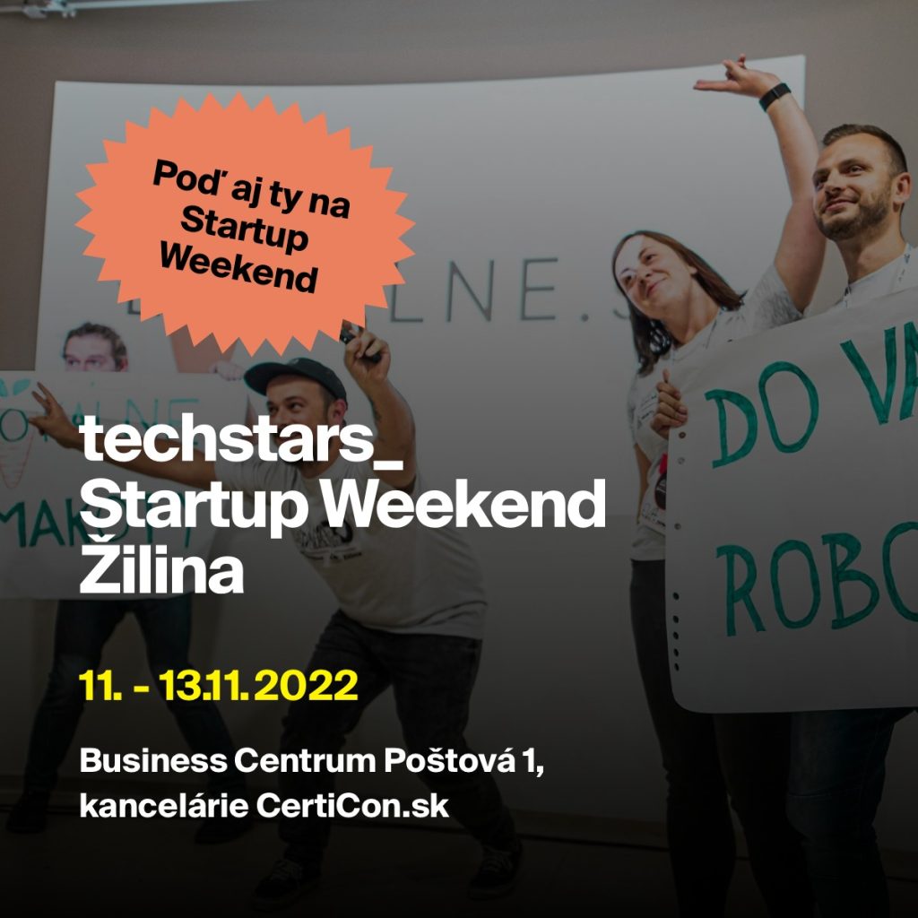 Druhý novembrový víkend sa v priestoroch Biznis centra (office Certicon) na Poštovej 1 po dlhšej pauze uskutoční už v poradí 9. ročník podujatia STARTUP WEEKEND ŽILINA. Intenzívny 54-hodinový maratón plný inovácií, kreativity a networkingu opäť privíta dychtivých účastníkov s novými nápadmi na produkty, služby či projekty. Počas troch dní dostaneš priestor na zloženie tímu, realizáciu nápadu, vytvorenie prototypu a následnú možnosť odprezentovať svoj projekt porote zloženej z úspešných podnikateľov a investorov.