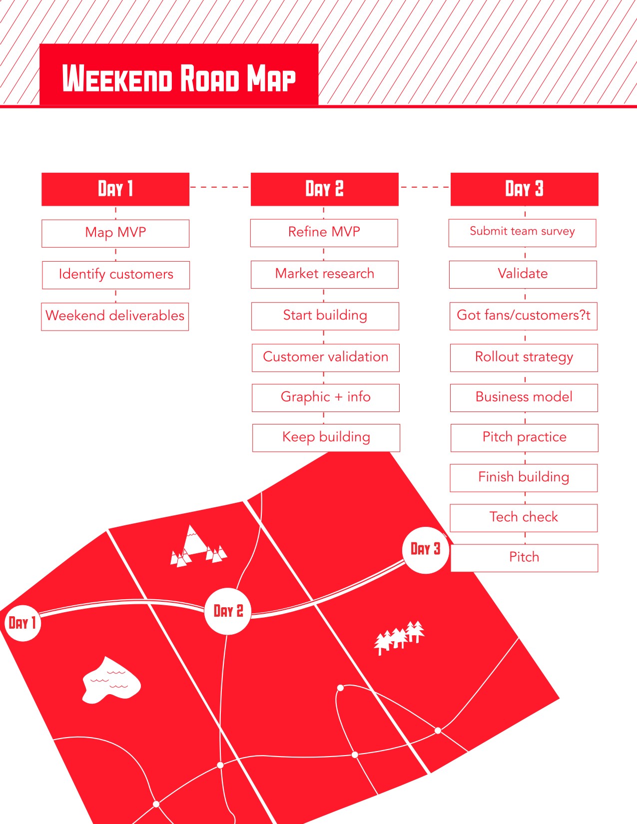 Za jediný víkend stihneš v sebe objaviť svoje limity, získaš nové príležitosti, nadobudneš cenné skúsenosti a zažiješ atmosféru skutočnej tímovej práce. Podujatie sa začína v piatok večer úvodným warm-upom a zoznámením sa s účastníkmi, odborníkmi z praxe a porotou. Následne idea makeri predstavia svoje nápady a vzápätí vytvoria tímy, s ktorými sa pustíš do trojdňovej výzvy – od tvorby odchodného modelu cez prototypovanie, až po obhájenie projektu na trhu.