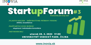 Ďalšie stretnutie INOVIA Startup Fóra sa koná v utorok 28. 2. 2023 o 17:00 h (do 19:00 h) v budove Univerzitného vedeckého parku na Žilinskej univerzite. Nezabudnite sa zaregistrovať.