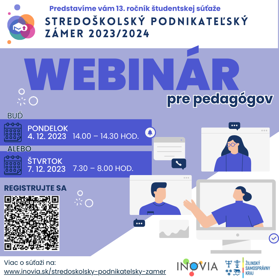 Žilinský samosprávny kraj a Inovačné centrum INOVIA spustili vynovený 13. ročník súťaže „Stredoškolský podnikateľský zámer“, ktorá je určená pre všetkých študentov stredných škôl v Žilinskom kraji v školskom roku 2023/2024.