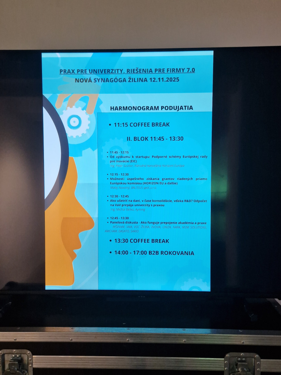 Program podujatia v Žiline zahŕňal komplexný mix aktivít navrhnutých na maximálny dopad. Účastníci mali možnosť zúčastniť sa prednášok o podpore inovácií, transferu technológií a moderných spôsoboch financovania.