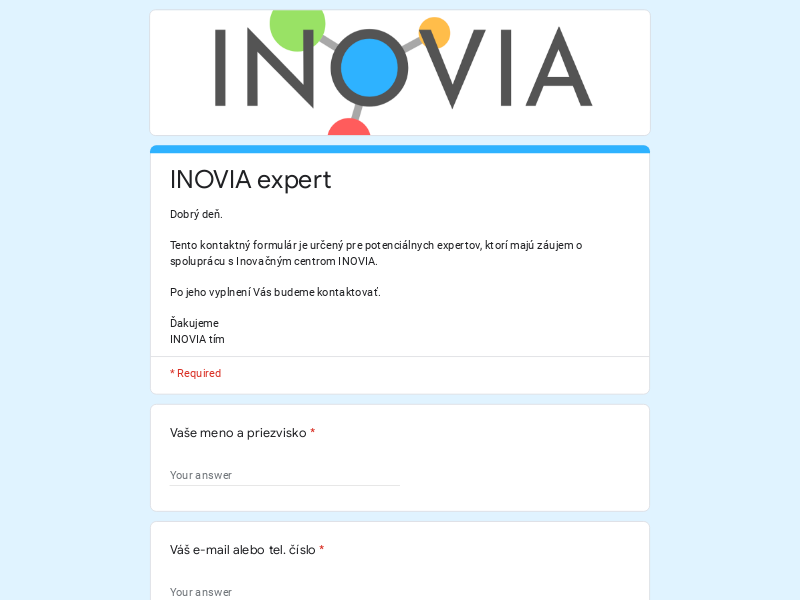 Ak máte záujem o spoluprácu s Inovačným centrom INOVIA, postup je jednoduchý.