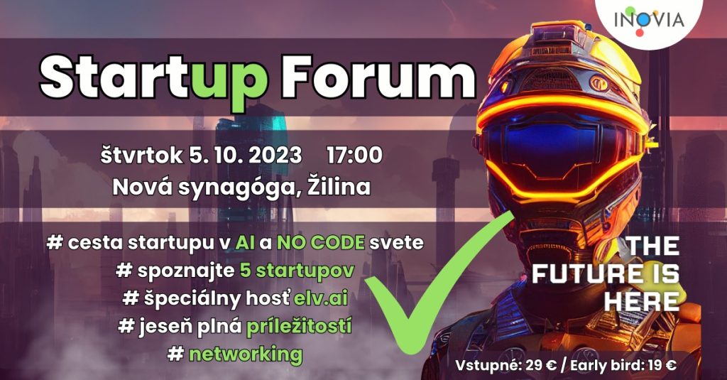 Pozývame Vás na ďalšie Startup Forum – jedinečné podujatie, ktoré Vám ponúkne pohľad do sveta umelej inteligencie, No Code technológií a (nielen) tech startupov.